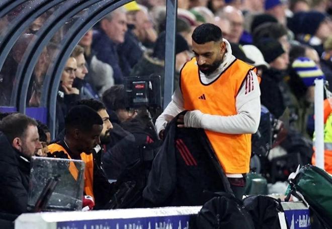 在埃蘭路球場(chǎng)的替補(bǔ)席上,薩拉赫裹著厚實(shí)羽絨背心、戴著帽,全程低頭不語(yǔ),仿佛刻意回避所有鏡頭。但終場(chǎng)哨響后,他突然起身,在場(chǎng)邊全力沖刺,每一步都寫(xiě)滿(mǎn)了壓抑已久的憤怒與不甘。